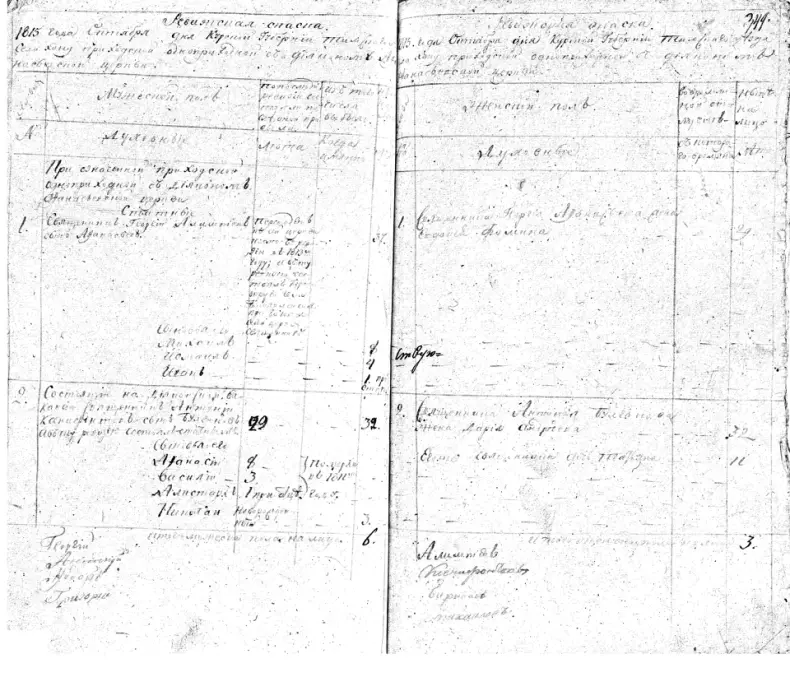По «ревизским сказкам» 7-й подушной переписи населения 1815 года штат Афанасьевской церкви состоял из: священника Георгия Алимпеева сына Афанасьева, 37 лет, переведённого в 1813 году из Богоявленской церкви села Богоявленского Курского уезда. состоящего на дьяконской вакансии священника Антония Ксенофонтова сына Булгакова, 32 лет; дьячка Фёдора Борисова сына Истомина, 31 год; пономаря Григория Михайлова сына Истомина, 30 лет. [6]