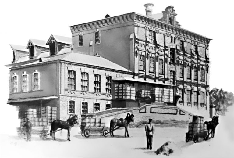 Рождение курской «ликёрки»Для полноты картины затронутого выше вопроса перенесёмся лет на 250 вперёд. Курск на границе XIX и XX веков. Казённый винный склад на улице Новоавраамовской (Халтурина). В дореволюционное время это здание было украшением города. Его начали строить 29 сентября 1897 года, а закончили 12 июня 1900-го. Возведённое из лицевого кирпича в псевдоготическом стиле, оно было увенчано красивыми стреловидными навершиями. В те времена денег на промышленные здания не жалели. Центральная часть первоначально имела два этажа, а при послевоенном восстановлении получила третий. Перед фасадом был устроен небольшой фонтан, что для тех времен было дорогостоящей редкостью. Место для строительства было выбрано толково: недалеко от центра Курска, но без излишней городской суеты. Казённый винный склад, принадлежавший министерству финансов, по сути, представлял собой фабрику с различными отделениями. В глубоких подвалах хранился спирт, а на верхнем этаже – посуда. В здании находились моечное и разливочное отделения. Работали три паровые машины, и от них шли различные приводы.