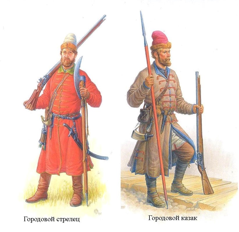 автор: А. КуркулевСборник: РОСПИСНОЙ СПИСОК ГОРОДА КУРСКА 1656 ГОДА С момента возрождения в конце XVI века Курской крепости в состав её гарнизона входили "служилые люди по прибору" - стрельцы и казаки. Стрельцы - это пехота, вооруженная "огненным боем" - ружьями и пищалями. Кроме огнестрельного оружия они также имели в своем распоряжении бердыши - топоры с широким лезвием на длинной рукояти и сабли. Государство полностью обеспечивало стрельцов оружием и обмундированием. Формирование стрелецких сотен в Курске происходило путем перевода служивых людей из центральных регионов России, а также за счет набора из числа вольного посадского и сельского населения. Служба была пожизненной и могла передаваться по наследству: дети и родственники стрельцов также пополняли войско. Помимо участия в боевых действиях стрельцы несли караульную службу на стенах и башнях Курской крепости, у съезжей избы и пороховых складов, следили за порядком в городе и на посаде. Городовые казаки были конными и пешими, а в их арсенале было как холодное оружие, так и огнестрельное. Наряду с набором "охочих" людей в состав городовых казаков охотно включали вольных донских казаков. Службу несли со своим конем и вооружением. Единой военной формы длительное время не существовало, одевались преимущественно в соответствии с местными обычаями. За службу они получали денежное и хлебное жалованье, а также были освобождены от всех налогов. Кроме гарнизонной службы курские городовые казаки совместно с детьми боярскими участвовали в боевых походах и дозорной службе на сторожах - конных постах, разбросанных преимущественно по периметру Курского уезда у татарских дорог.