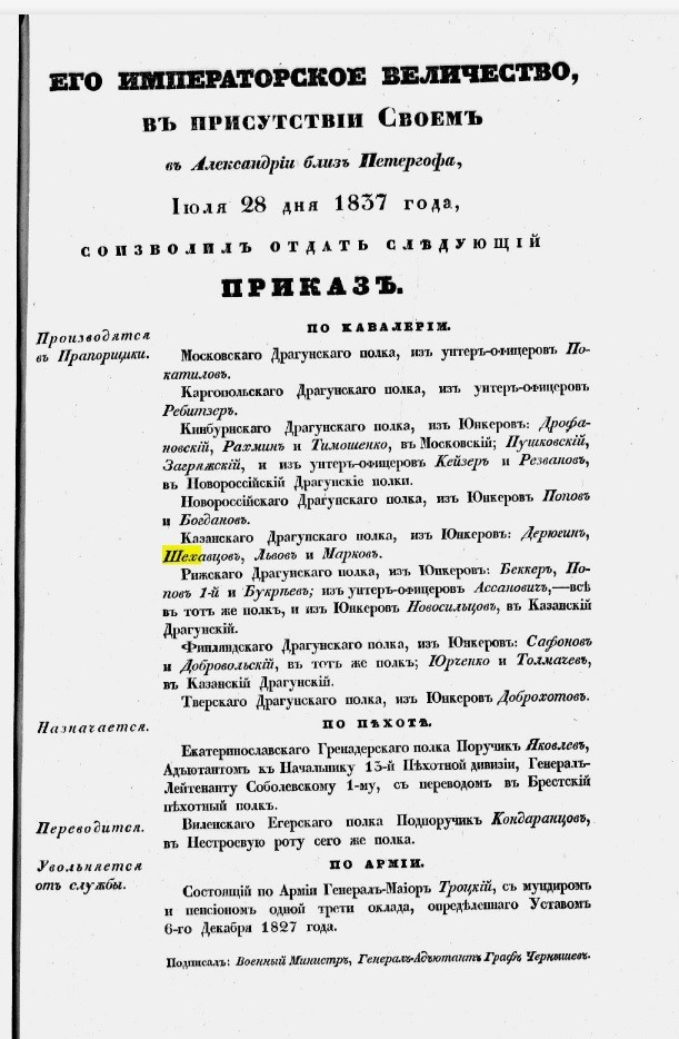 17 декабря 1844 года Александр Матвеевич Шеховцов увольняется со службы по семейным обстоятельствам капитаном и с дозволением носить в отставке офицерский мундир. [17] Дмитрий Михайлович Шпажинский продолжает службу в Казанском драгунском полку и выходит в отставку в ноябре 1849 года подполковником и с мундиром. [18] В 1850 году он женится на Любови Матвеевне Шеховцовой [19], которая получает от отца в качестве свадебного подарка имение в сельце Городище-Безобразово - 704 десятины земли и 66 крепостных душ. [20] После женитьбы Д.М. Шпажинский посвятил себя управлению имением. Хорошо налаженное хозяйство, основанное на эксплуатации крепостных крестьян, и две водяные мельницы приносили владельцам поместья неплохой доход, позволяющий безбедно существовать. Вскоре супруги Шпажинские покупают в Щигровском уезде в деревне Поныри ещё одно имение, вместе с которым по купчей Любови Матвеевне достается 37-м крепостных душ, а Дмитрий Михайлович становится владельцем 12-ти крепостных крестьян. [21] После отмены крепостного права и смерти в январе 1866 года Дмитрия Михайловича Шпажинского, Любовь Матвеевна не смогла приспособиться к новым условиям ведения хозяйства. Большую часть принадлежащих ей земель она была вынуждена сдавать в аренду крестьянам, так же были сданы в аренду и принадлежащие ей водяные мельницы. [22]