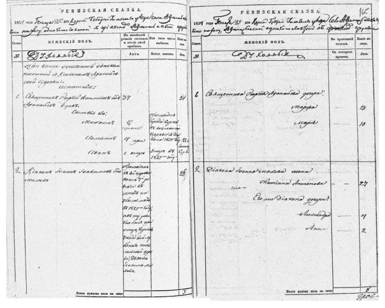 Согласно «ревизской сказке» 1834 года однокомплектной с дьяконом Афанасьевской церкви села Афанасьевского на Хону при храме значатся штатные церковнослужители: священник Георгий Алимпеев сын Афанасьев, 55 лет; дьякон Иоанн Иоакимов сын Махов, 26 лет. Назначен на эту должность в 1829 году; дьячок Федор Борисов сын Истомин, 49 лет; пономарь Григорий Михайлов сын Истомин, 49 лет. [7]