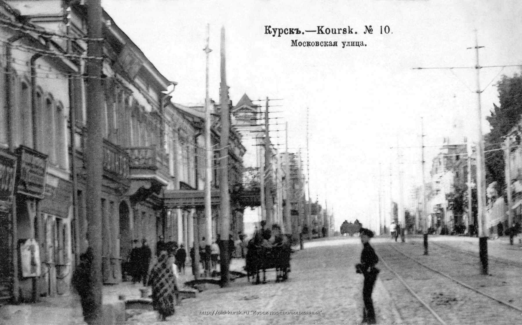 №10 Московская улица. Левая сторона квартала от Верхней Гостиной до Почтовой. Слева дома купцов В.Б. Воронкова, И.В. Пузанова, Н.П. Левашкевича с собственной кофейной и кондитерской и В.А. Печке с собственным винно-бакалейным магазином на углу Почтовой. На другом углу почтово-телеграфная контора