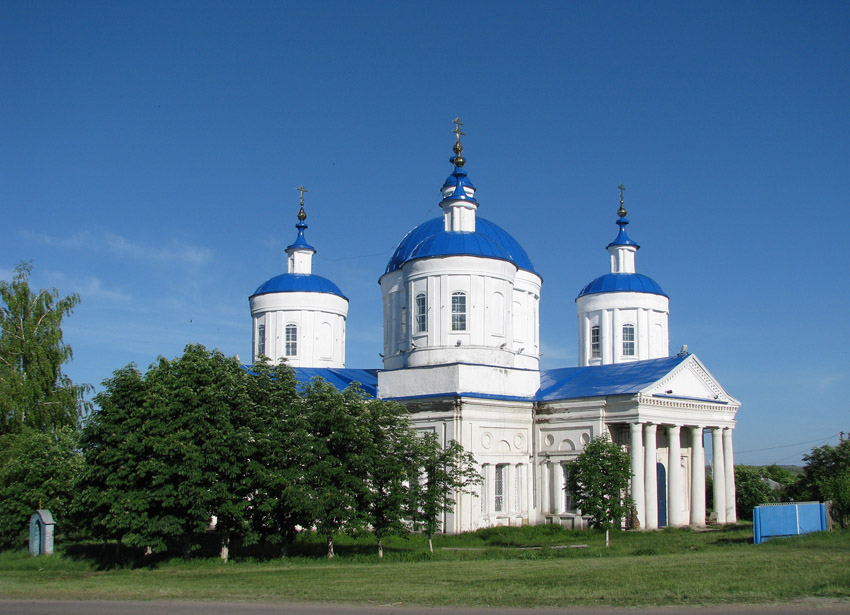 автор: Т.Н. Потаскаева.В статье представлены сведения по истории Успенской церкви с. Халань, но прежде чем приступить к самой истории, следует пояснить изменения в названии населенного пункта и изменения в административно-территориальном делении территории, где он располагался в период, о котором идет речь в статье. Согласно документам переписи податного населения за 1782 и 1795 гг. слобода входила в состав Корочанской округи Курского наместничества.[1] ![]() В списке населенных мест Курской губернии за 1862 г., самом раннем справочнике, который имеется в госархиве Курской области, значится сл. Екатериновка (Халань) Новооскольского уезда с числом жителей - 6200.[2] До 1924 г. сл. Халань входила в состав Новооскольского уезда Курской губернии. В это время у слободы уже существует название Большая Халань. В 1924 г. было утверждено новое деление Курской губернии и Большехаланская волость Новооскольского уезда со всеми населенными пунктами вошла в состав Старооскольского уезда. Постановлением ВЦИК и СНК РСФСР от 30.07.1928 г. 1-й Халанский и 2-й Халанский сельсоветы вошли в состав Великомихайловского района. В 1929 г. 1-й Халанский и 2-й Халанский сельсоветы были объеденены в Большехаланский сельсовет и переданы из Великомихайловского района в Корочанский район.[3] Большей частью слободы в конце XVIII в. владел князь Трубецкой Дмитрий Юрьевич - лейб-гвардии капитан-поручик. Затем владельцем стал его сын Иван Дмитриевич, а позже внук - Юрий Иванович Трубецкой.[4] В сл. Екатериновка (Халань) до 1819 г. существовало 2 церкви: Рождества Иоанна Предтечи (Рождественская, Предтеченская) и Екатерининская в честь великомученицы Екатерины В 1819 г. в Екатериновке вместо старой Екатериновской церкви была построена новая Успенская. Храм был возведен на средства Ивана Дмитриевича Трубецкого.[5] Крестообразное каменное здание было увенчано пятью главами, покрытыми железом. На такой же, крытой железом, колокольне, выстроенной рядом с храмом, размещалось шесть колоколов: первый 103 пуд. 18 ф., второй - 34 пуд. 35 ф., третий - 15 пуд. 14 ф., четвертый - 9 пуд. 25 ф., пятый и шестой - малые купола, вес которых не указан. Вокруг церкви стояла каменная ограда. В алтаре было освящено три престола: главный - во имя Успения Пресвятой Богородицы, изготовлен из кипарисового дерева. За престолом два деревянных креста на подставке, над престолом балдахин на четырех колоннах. На горнем месте иконостас с изображением Царя Славы и иконой "Моление о чаше", справа от них жертвенник и три деревянных креста. Второй престол во имя святителя и Чудотворца Николая из сосны. За престолом медный крест на деревянном пьедестале. Жертвенник и круглый стол с иконой "Распятие Спасителя". На горнем месте икона Спасителя. Третий престол во имя великомученицы Екатерины был изготовлен из сосны, верхняя доска кипарисовая. За престолом медный крест на деревянном пьедестале, жертвенник - круглый стол с дверкой, на котором икона "Распятие Спасителя". На горнем месте икона Спасителя. Перед тремя иконами находится предалтарный иконостас в одну линию. Перед главным престолом - иконостас в четыре яруса и два боковых в три яруса. В среднем иконостасе икон четыре: Спаситель, написанный на доске, чеканной по золоту работы, без ризы; Богоматерь - на доске, чеканной работы, без ризы; Иоанна Крестителя - на доске, чеканной работы, без ризы; великомучен