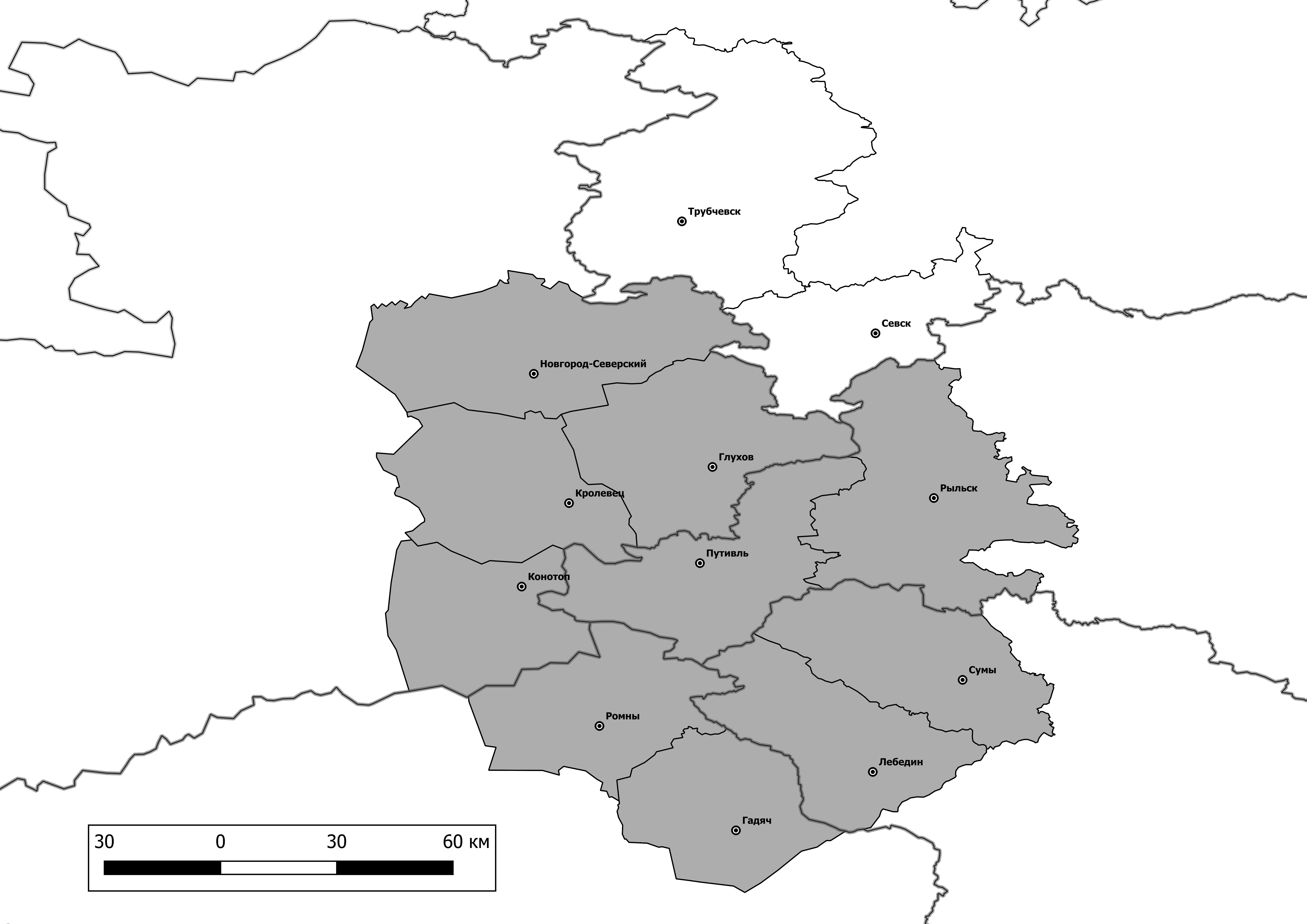 9. Новгород-Северская губерния существовала в 1781-1796 гг. и состояла из 11 уездов (Глуховского, Конотопского, Коропского, Кролевецкого, Мглинского, Новгород-Северского, Новоместского, Погарского, Сосницкого, Стародубского и Суражского). Интересно, что в 1863 г., согласно сообщению В. П. Ефремова, существовал проект создания Новгород-Северской губернии, к которой предполагалось отчислить Путивль (Ефремов В. П. Краткий исторический очерк … . С. 41-42).