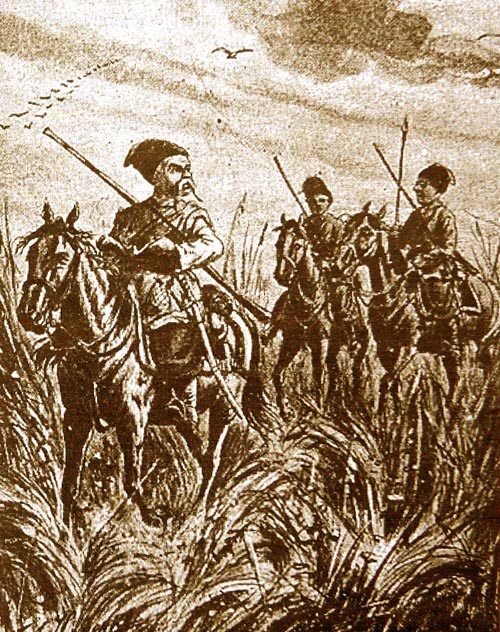 автор: Н.Н.Чалых.Рыльск — пограничный город, центр сторожевой и станичной службы на юго-западе России.![]() Рыльские казакиВ наше время часто ведутся споры и возникают нелепые вымыслы о происхождении казаков. Что это за народ с именем «казаки», бесстрашные воины? Я не буду затрагивать историю донских, кубанских, черноморских, тем более запорожских казаков, потомки которых живут в наших краях, а расскажу лишь о рыльских казаках и вкратце — соседних (путивльских и курских), то есть северских казаках. Прежде всего хотелось бы пояснить читателю, что автор не принимал во внимание ничем не оправданные и документально не подтвержденные гипотезы многих литераторов и историков. Так, в книге «Дорогами курских казаков» курские «кмети», участвовавшие в походе князя Игоря на половцев в 1185 году (см. «Слово о полку Игореве»), причислены к казакам, в то время как они на самом деле относились к трудовому народу кметей-северян. Известный славист В.Ф. Кочнов утверждает, что кметями во времена князя Игоря (1185 год) называли свободных крестьян, поселян[47]. Наш земляк, профессор-историк В.В. Мавродин полагал, что «кметы» — мелкие бояре, зажиточные крестьяне, которые, опираясь на князя, входили в его дружину[48]. Примерно так же считает и А.А. Танков: «съведоми къмети» — это «удалые витязи-дружинники»[49]. А в «Толковом словаре...» В.И.Даля говорится с пометкой слова «старинное» и «южнорусское»: «Парень, крестьянин» и «земский воин, ратник», а словом «кметь» называли крестьян (поселян), бравшихся при необходимости за оружие для защиты земли Русской. Примерно так же считают и другие историки. Но никто из них не называл кметей казаками, хотя образ их жизни был схож с казачьим. Нет ни в летописи, ни в исторических документах упоминания о казаках, участвовавших в битве при Калке, где погиб рыльский князь Мстислав («А того же лета 1241-го года насилие и обиду творяху многу и всё пусто сотвориша, татарове убиша Мстислава Рыльского»)(*). Формирование же казачества в Путивле, Рыльске, Новгород-Северске, Курске можно отнести к концу XV века или, как предполагает писатель, историк, исследователь казачества Е.П.Савельев, к 1491 году: «В пределы древнего княжества Северского, во всех главных и пограничных городах, как то: Чернигове, Новогород-Северске, Стародубе, Путивле, Рыльске и других, появились свои казаки под наименованием украинских, северских или севрюков»(**). Это было время, когда из севрюков образовывались станицы по 50—100 человек, участвовавшие в походах, охранявшие границу Русского государства и посылаемые князем на разведку в Донские степи и на Крымскую линию. В эти годы уже и в северском крае стали называть удалых и смелых воинов казаками. Название это пришло от татаро-монголов, а монголы позаимствовали слово у кайсацкого (кипчанского) племени казах, которое находилось в Киргиз-кайсацкой степи и славилось своими подвигами во всей Азии. А называли славных воинов-удальцов кай-саками. Еще раньше, в конце X века, в персидской хронике «Гудуд аль Алэм» упоминается в Приазовье земля касак (Алмазов Б. Казаки. — С. 2). Татары еще в XIII веке создали отборнейшее войско из неукротимых воинов, называемых кай-саками. Русичи своих бесстрашных воинов-землепашцев, в любой момент садившихся на коней в полном вооружении и выступавших на защиту земли Русской, стали называть казаками. А своего гол