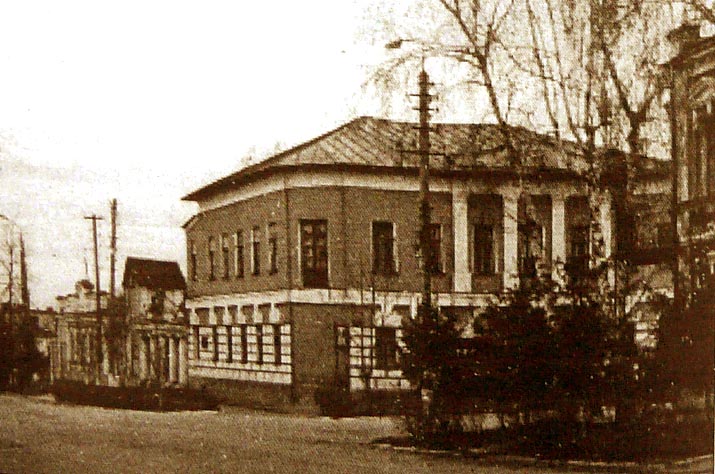 Большую роль в общественной и духовной жизни города Рыльска играли купцы первой гильдии Выходцевы. Об их богатстве и крепкой христианской вере говорит тот факт, что еще в 1769 году Яковом Борисовичем Выходцевым была построена в центре города каменная двухэтажная Преображенская церковь вместо сгоревшей во время Рыльского пожарища 1720 года деревянной церкви, построенной князем Василием Шемякой. Перед церковью располагалась Административная площадь. Позже, в 1769 году, в стороне от этой площади Федор Александрович Выходцев построил великолепный двухэтажный дом, с колоннадой со стороны фасада и двора, с хозяйственными постройками, с высокой каменной оградой. В этом здании сейчас находится Дом детского творчества и детская библиотека. Все дворовые постройки и ограждение с арочными воротами, украшенные разного вида парапетами, были разрушены уже в послевоенные годы. После революции дом был конфискован. Последней покинула его Анна Николаевна Выходцева, дочь рыльского городского головы Николая Павловича Выходцева. Брату Федора Александровича Ивану Александровичу Выходцеву принадлежал один из старейших каменных домов Рыльска, построенный еще по радиально-кольцевой планировке города на ул. Репинской. Ранее дом принадлежал воеводе, затем его приобрел Выходцев, позже был продан им рыльскому купцу А.А. Бондареву, а когда Бондарев построил себе новый дом на ул. Преображенской, его приобрела дворянка Вера Андриановна Пузанова. Этот дом замечателен тем, что в 1709 году в нем останавливался царь Петр I. В настоящее время этот дом претерпел изменения в фасаде: были убраны многие детали архитектурного оформления, разобраны арочные ворота, перестроена веранда. В нем сейчас размещены квартиры. И только мраморная доска напоминает о том, что в 1709 году, возвращаясь с Полтавской битвы, в доме останавливался Пётр Великий. Одним из украшений города является и дом на углу улиц Преображенской и Выходцевской (Ленина/Карла Либкнехта), в котором некогда был Дом ребенка, а до 60-х годов размещались райкомы партии и комсомола. Дом тоже слегка утратил свою былую красоту: демонтирован прекрасный балкон, которым любовались все прохожие. В настоящее время здесь находятся администрация города Рыльска и городская Дума. До революции в этом доме жили сестры Выходцевы -Наталья Ивановна и Лидия Ивановна — преподаватели, посвятившие всю свою жизнь воспитанию детей. Своих семей они не имели. Их брат Илья Иванович, наследник этого дома, по образованию горный инженер, жил и работал в Донбассе. ![]() Ул. Выходцевская (К. Либкнехта). Дом Выходцевых Купеческому роду Выходцевых принадлежал и воеводе кий дом (так называемый «Дом Шемяки»(*)), где сейчас на ходится ЗАГС. Еще ранее Выходцевым принадлежало здание воеводской приказной избы, которое сохранилось до наших дней. Оно одноэтажное, выполнено из кирпича на известковом растворе, имеет мощные стены и сводчатое перекрытие. К великому сожалению, городские власти вместо того, чтобы устроить здесь музей, отдали здание под жилье, а во дворе разрешили строить сараи. Ранее этот дом считался угловым (по старой планировке) и находился рядом с построенной Выходцевым Спасо-Преображенской церковью. Церковь разрушили в 1939 году. Сейчас на ее месте находится Дом культуры. Ограждение с изящной кованой решеткой и арочными воротами было раз