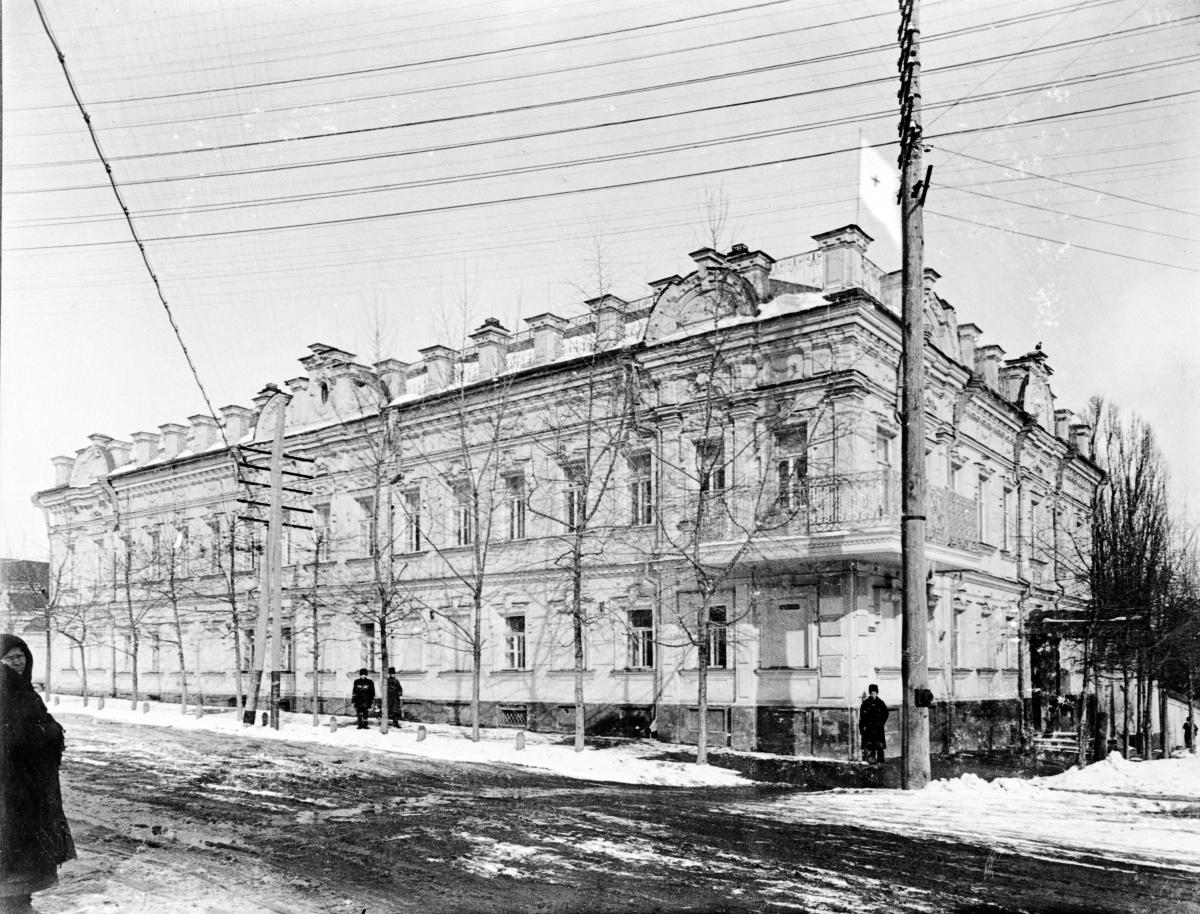 автор: В.СТЕПАНОВДОМ КУПЦА Н.В.ГЛАДКОВА (МЕДИЦИНСКИЙ КОЛЛЕДЖ)На пересечении улиц М. Горького и Бебеля стоит большой двухэтажный дом с угловым балконом и красивой мелкой лепкою на фасадах (№15).. Это здание принадлежало известному в городе купцу Н. В. Гладкову. Пожалуй, это лучший купеческий дом, сохранившийся до сих пор в Курске от прошлого. ![]() Семья Гладковых отличалась в городе как своим богатством, так и щедрой благотворительностью. Купец Н. В. Гладков мог, к примеру, устроить в расположением по соседству здании городского реального училища домовую церковь. Поэтому и немудрено, что "гладковский дом", как его называет куряне, был обширным и нарядным. Он н сегодня заставляй замедлить шаг, чтобы внимательно всмотреться в его архитектурные украшения, богатую, но стертую долгим временем лепнину, в чудом сохранившийся у вьездовых ворот глубоко врытый в землю гранитный столб, охранявший каменную арку ворот от колес конных экипажей... Во время первой мировой войны здание было отдано под военный госпиталь. После революции здесь некоторое время размещались органы губчека, потом в здании находился 74-й сводный эвакогоспиталь, После его ликвидации в начале двадцатых годов стал вопрос о передаче здания губздравотделу для открытия в нем больницы для рабочих. Однако, в 1923 году здание было отдано рабфаку для размещения студенческого общежития на 200 мест. В 1927 году, после закрытия рабфака, здесь открылось общежитие для безработных и беспризорных матерей и их детей. ![]() Лазарет купца Н.Н. Гладкова Перед Великой Отечественной войной в бывшем купеческом доме находилась детская больница. Здание не пострадало в годы войны и после освобождения города от немецких захватчиков в нем некоторое время работал аппарат Курского обкома ВКП(б). Осенью 1943 года в здании выступал А. Микоян на совещании по вопросу сдачи хлеба колхозами и совхозами в госпоставки. В конце 19-го века в этом здании работала кухаркой юная Дежка Винникова, будущая знаменитая российская эстрада певица Надежда Плевицкая. В начале нашего века здесь жила Вера Мухина, родственница Гладковых, в будущем всемирно знаменитый скульптор, автор композиции "Рабочий и колхозница". Свой первый в жизни портрет горничной Анюты она написала маслом в этом доме. До 1955 года здесь размещался родильный дом №3, а с его переездом в только что отстроенное здание на улице Ленина (нынешний роддом №1) тут разместился областной противотуберкулезный диспансер со стационаром. Теперь в здании находится медицинский колледж (ранее медицинское училище), как бы продолжая традицию пребывания в бывшем купеческом доме за многие десятилетия различных организаций здравоохранения. © Владимир СТЕПАНОВ. Ваш комментарий:Система комментирования SigComments
