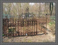 Сохранившийся фрагмент таблички на захоронении железнодорожникам. ИНЖ... ЛЕОНИД... РОД. ... УМ. ....