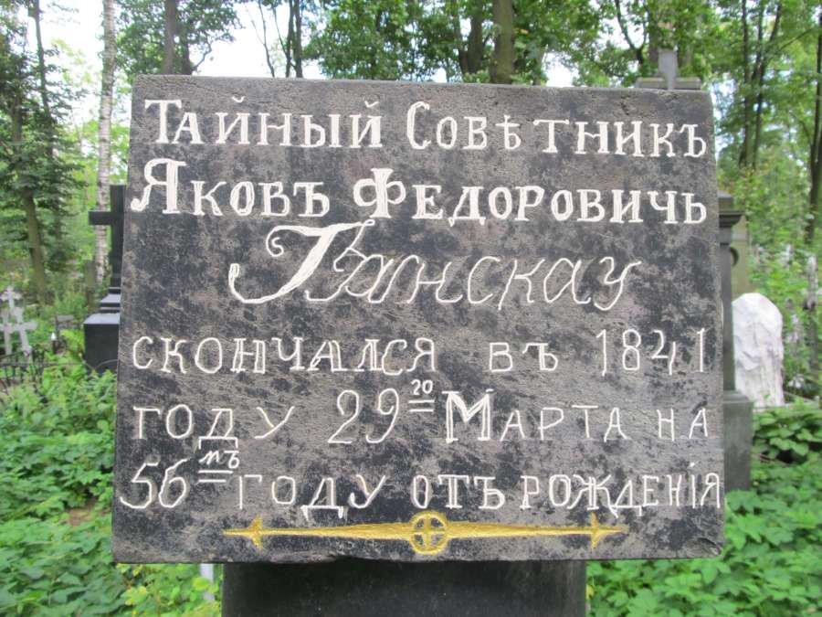 Ганскау Яков ФедоровичДополнено новыми данными: 3 апреля 2020 г. Добрый день. Я зашла к вам на сайт http://old-kursk.ru/people/gubernators.html в поисках материалов о моем предке Ганскау Якове Федоровиче. Он был какое-то время губернатором Курска. Хочу уточнить годы его жизни: 28.06.1786 – 29.03.1841, крещен в Домантове; восприемники: пастор Готфрид Компей, надворный советник Иван Маркович и Анна Валентей. И прилагаю один из известных его портретов. Неизвестный художник. На этом портрете он по возрасту ближе к тому, когда служил в Курске. ![]() По поводу первого портрета. "Курский губернатор" Ганскау Яков Федорович. Неизв. худ. 1830-31 и правка после 1834. Курская галерея им. Дейнеки. Атрибуция А.В. Кибовского. А.В. Кибовский занимался идентификацией портретов по униформе и орденам. Есть книга А.В. Кибовского "500 неизвестных". И там этот портрет должен быть на странице 179. https://www.chitai-gorod.ru/catalog/book/1187388/ . Я написала в галерею им. Дайнеки вопрос. Вот что нам ответили: "Здравствуйте, Спасибо за письмо. Да, действительно, этот портрет находится в собрании Курской картинной галереи им. А.А. Дейнеки. К сожалению, А.В. Кибовский не писал нам о результатах своих исследований, спасибо, что Вы сообщили их нам. Портрет работы неизвестного художника с названием "Портрет Курского губернатора" был приобретен в 1963 году из частной коллекции в Ленинграде. Его каталожные данные следующие: Неизвестный художник первой половины 19 века Портрет Курского губернатора (как теперь мы понимаем, Я.Ф. Ганскау) Холст, масло. 76 х 64 см Инв. № Ж-1301 К большому сожалению, у нас нет постоянной экспозиции, поэтому портрет обычно включается в экспозиции русского искусства 19 века, или выставки, связанные с юбилеем войны 1812 года. Постоянное же место его пребывания -- фонды картинной галереи. Приятно узнать, что потомки героев "наших" портретов живы, здоровы и проявляют к ним интерес. С уважением Курская государственная картинная галерея им. А.А. Дейнеки"