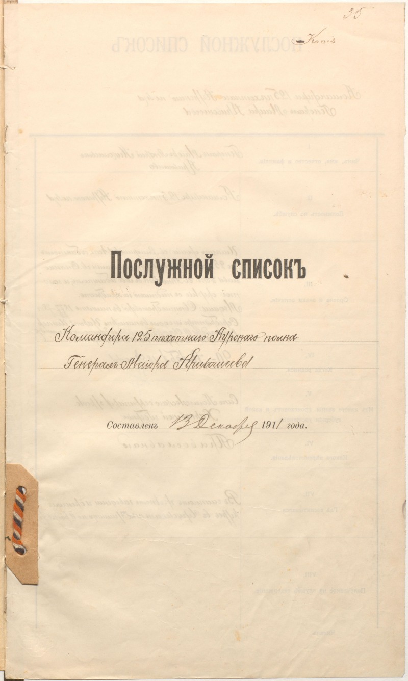 Андрей Николаевич Кривошеев - командир 125 пехотного Курского полкаЗдравствуйте! Случайно наткнулся на ваш сайт посвященный г. Курску. Думаю, что вам обязательно нужно иметь фотографию Андрея Николаевича Кривошеева, который командовал 125-м пехотным Курским полком с 1906 по 1911 год. Во вложении его фото в форме полковника с орденом св. Анны 2 ст. с мечами, датированное 1908 годом. Его могила находится в г. Ровно, на военном мемориальном Дубенском кладбище. Потомки живут в г. Ростове-на-Дону, его правнучка моя теща Колесникова Александра Константиновна. Я увлекаюсь историей и генеалогией. Результат моих поисков можно увидеть на замечательном сайте https://www.ria1914.info/index.php/Кривошеев_Андрей_Николаевич Также прикладываю его послужной список… Надеюсь, вам пригодится этот исторический материал… С уважением, Игорь Люгаев. Ростов-на-Дону. ![]() для увеличения щелкните по фотографии Кривошеев Андрей Николаевич - полковник, командир 125-го пехотного Курского полка. 1908 год ![]() ![]() могила Кривошеева Андрея Николаевича в г. Ровно, на военном мемориальном Дубенском кладбище. ![]() Первая страница Послужного списка генерал-майора Кривошеева - командира 125 пехотного Курского полка, составленного 13.XII.1911 г. |