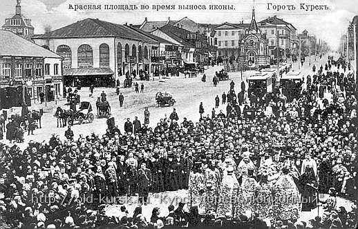 В моей коллекции материалов для сайта "Курск дореволюционный" скопилось несколько фотографий одного и того же места - Красной площади. Очень интересно посмотреть на эти фотографии, увидеть как она менялась за последние 100 лет. В общем то - изменения кардинальны, и на первый взгляд между первой и последней - нет ничего общего. Но мы без труда узнаем это место - это наша Красная площадь. Облик Красной площади Курска сложился после пожара 1781 года. Императрица Екатерина II утвердила новый Генеральный план Курска, выделив на нем Красную площадь. Вот рисунок базара на Красной площади, не ранее 1889 года, по всей вероятности это конец 1890-х, идет еще век XIX-й: ![]() Вот, фотографии Красной площади начало 1900-х: