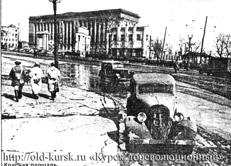 Нет еще тех монументальных зданий, которые однозначно олицетворяли бы в Курске административный центр, власть мирскую, тут мы видим мало чем примечательную площадь небольшого городка, хоть и имеющего статус губернского центра. Величественен же был в ту эпоху Собор Знаменского монастыря, олицетворяющий власть духовную, и с другого ракурса Красная площадь совсем другая. Строгая, величественная. Начало 30-х еще не сильно изменило Красную площадь. Но нет уже часовенки установленной в 1889 году в память о трагической гибели императора Александра II: Но сменилась эпоха и по Красной площади маршируют части РККА, готовые раздуть пожар мировой революции, приветствуют боевой порыв на трибунах руководители ВКП(б).... И нет уже башенок с часами на Знаменском соборе. Это 1 мая 1937 года: Курск в оккупации. Немцы на Красной площади. Лето 1942 года: ![]() А на этой фотографии, на заднем плане хорошо просматривается здание Знаменского собора: ![]() Вот Красная площадь сразу после освобождения Курска от немецко-фашистских захватчиков зимой 1943 г.: ![]() ![]() А это через пару месяцев, май 1943-го. Сошел снег, появилось освещение на столбах. На клумбах радуют горожан цветы. ![]() Видны развалины зданий не уцелевших в годы войны. А это уже суровая зима 1944 года: ![]() Не прошло и 5 лет после окончания войны, а на Красной площади 1950 года уже ничего не напоминало о войне. Лишь подъемные краны за заднем плане, говорят о том, что город активно восстанавливается и не все раны нанесенные городу войной уже затянулись кожей новостроек. Вновь посаженные аллеи молодых лиственных деревьев еще не подозревают, что не подходят их сермяжные кроны к лику Красной площади и скоро их место займут величественные голубые ели. ![]() Сквер у памятника В.И. Ленину в 1956 году. Источник фото - книга Фёдорова С.И. Центры городов Орла, Курска и Белгорода - комплексные памятники истории и культуры. - Л., 1975. На фотографии ниже здание Дома Советов. Началось строительство этого здания в 1939 году, к 41-му оно было практически построено, но во время войны оно в значительной степени пострадало. Так что это скорее всего или довоенная фотография или фото начала войны. ![]() Известно, что то здание, какое мы видим сейчас было построено в 1947 году, и к годовщине Октябрьской революции - 7 ноября было сдано в эксплуатацию. Уже в 1956 году здание Дома Советов выглядело так: ![]() Но вот техническая революция двинула прогресс, человек полетел в космос, появилась цветная фотография и мы видим Красную площадь в цвете. Фото 1967 года: ![]() 1973 год. Убирают рельсы трамвая с Красной площади. Трамвай появившийся на Красной площади Курска 30.4.1898 года в 1973 году навсегда ушел с Красной площади : ![]() Ваш комментарий: |
